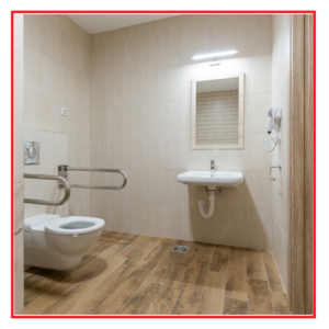 - Accessible Bathrooms: Bathrooms in Type A units feature accessible clearances around fixtures and reinforcement for future installation of grab bars. Showers must be roll-in, or tubs must have accessible seating.
